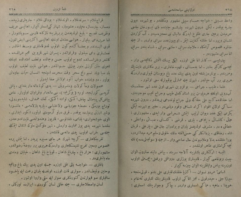 سیاحتنامه اولیا چلبی، سیاح معروف عثمانی (۱۶۱۱-۱۶۸۲) که حدودا ۳۷۰ سال پیش دیدههای خود را از دهها مملکت و سرزمین جهان آن دوره در یازده جلد به قلم آورده، نکات و تفصیلات فوق العاده جالبی در باره بسیاری نقاط ایران آن زمان، زندگی مردم و فرهنگ و زبان آنان دارد که تا کنون عموما از حیطه توجه ایرانیان به دور ماندهاست.