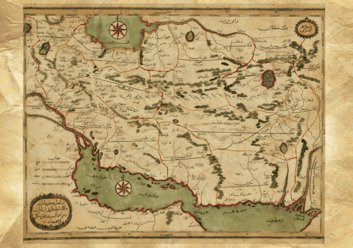 نقشه کاتب چلبی: «نقشه ایران که تحت مالکیت شاهان صفوی است»، 1620 م