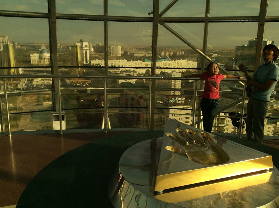 در آخرين طبقه «باى ترك» يك اثر حفر شده در برنز دست پرزيدنت نظربايف را گذاشته اند. گردشگران دست خود را در اين رد دست نظربايف گذاشته عكس ميگيرند.
