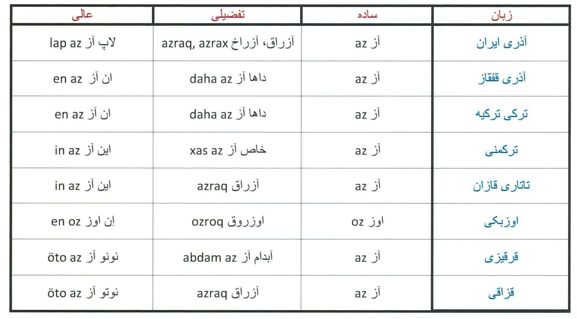 چند نکته جالب توجه است. ادات «راق، راخ» که در بعضی مناطق آذربایجان ایران (خصوصا تبریز) رایج است نه در لهجه ها و زبان های ترکی اوغوز (ترکیه، آذری استاندارد قفقاز، ترکمنی) بلکه در لهجه ها و زبانهای ترکی گروه قیپچاق مشاهده میشود. بعضی زبانشناسان از این قبیل نمونه ها نتیجه میگیرند که لهجه تبریز در جریان حوادث تاریخی (بخصوص دوره ایلخانان و تیموریان) تحت تاثیر زبان های ترکی قیپچاق (احتمالا اویغوری و جغتای و یا چاغاتای) قرار گرفته است.
