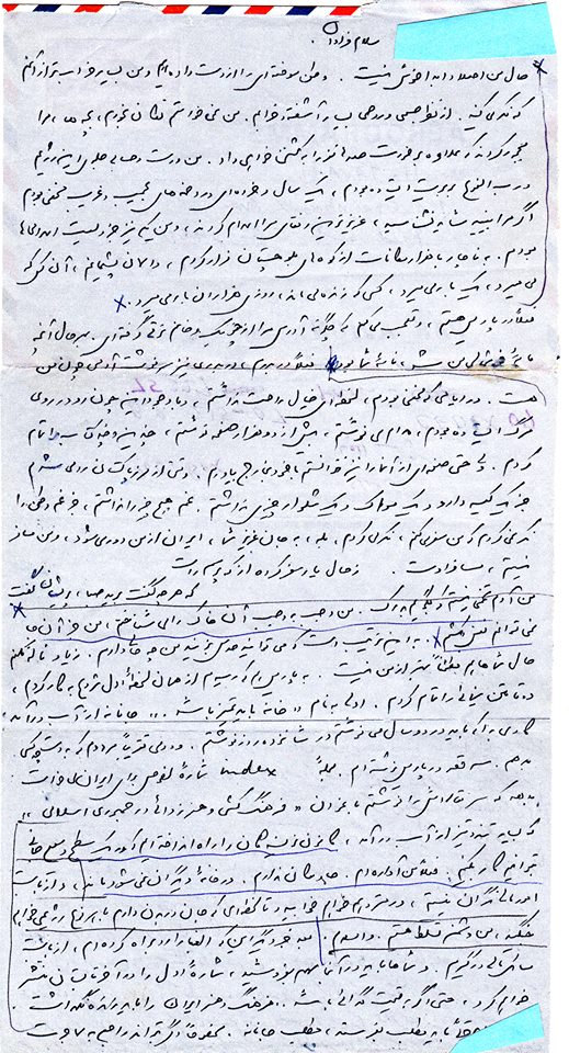 حال من اصلا و ابدا خوش نیست. وطن سوخته ای را ازدست داده ایم و من بسیار خراب تر از آنم که فکر میکنید. از نظر جسمی و روحی بسیار آشفته و خرابم. من نمیخواستم تکان بخورم. بچه ها مرا مجبور کردند که علاوه برخودت صد ها نفر را به کشتن خواهی داد. من درست و حسابی جلوی این رژیم و رب النوع بربریت ایستاده بودم، یک سال و خرده ای در دخمه های عجیب و غریب مخفی بودم. اگر مرا ببینید شاید نشناسید, عزیز ترین رفقای مرا اعدام کردند و من یکی نیز جزو لیست اعدامی ها بودم…