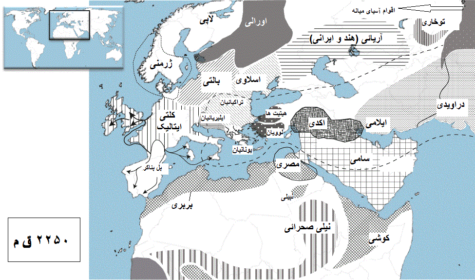 و بالاخره آنچه که در انتهای گوشه راست و بالای این نقشه به عنوان «اقوام مخلوط آسیای میانه» تعریف کردهایم نزدیک به دو هزار سال یا بیشتر رنگ و هویت مشخص و قطعی زبانی نداشتند بلکه به راستی مخلوطی از اقوام کوچنده و چادر نشین بودند که بعد از مدتی همه رو به سوی شرق، جنوب و غرب گذاشتند تا به سرنوشت چین، اروپا و خاورمیانه مُهری ماندنی بزنند.