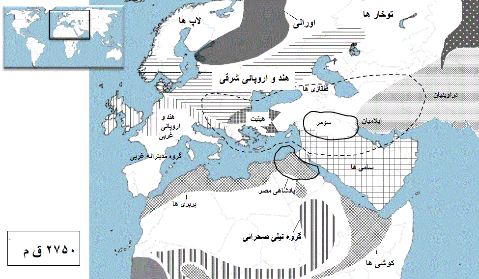 هنوز در موقعیت زبانهای مدیترانه غربی (و یا ایبریایی) مانند زبان پروتوباسکی تغییری رخ نداده است. وضع زبانهای دراویدی و (آنچه که برای ما ایرانیها مهم است) ایلامی هم که بعدها یعنی تا میلاد مسیح عملا از بین رفت، در این دوره دچار تغییری جدی نشد.