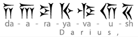 به کمک این حرف ها نام پادشاه «دا-آ-را-یا-وا-او-ش» نوشته میشد که همان «داریوش» ایرانی است وغربی ها به آن «داریوس» میگویند.