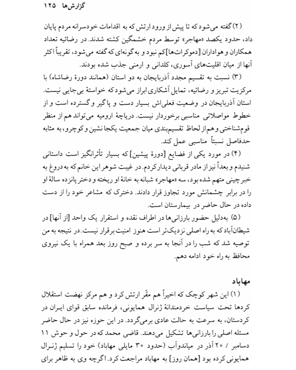 یک ماه پس از سقوط حکومت فرقه دمکرات آذربایجان و حزب دمکرات کردستان، سرهنگ جی. دی. پایباس، وابسته نظامی بریتانیا در سفارت این کشور در تهران، به اکثر نقاط آذربایجان اعزام میشود تا از وضع مردم وتبعات سقوط نیروهای «دمکرات» طرفدار شوروی، خود بالشخصه اطلاعات دست اول جمع کند و آن را به اطلاع سفارت بریتانیا در تهران برساند. این سفر بین دوم دی ماه ۱۳۲۵ و ۱۴ دی ماه ۱۳۲۵ یعنی کمتر از یک ماه پس از سقوط رسمی حکومت فرقه دمکرات در تبریز و حزب دمکرات کردستان در مهاباد بود.