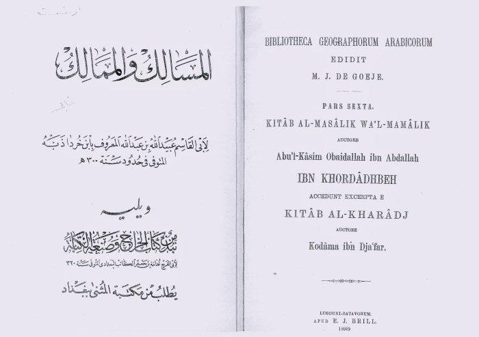 Ibn Khordadhbih: Kitab al-Masalik wa’l-Mamalik, edited, introduced by: M. J. De Goeje, Brill, Leiden 1889
