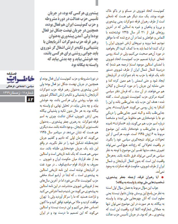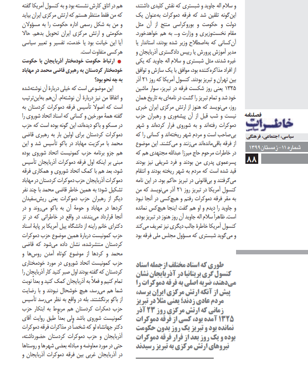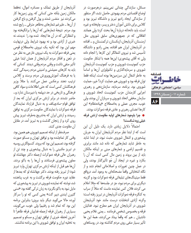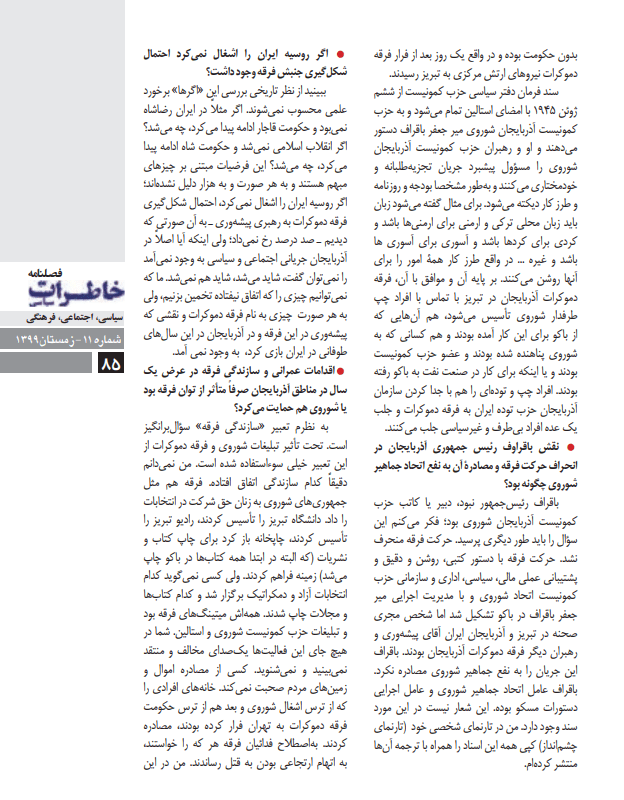 بستر تاریخی حکومت «ملی» و«فرقه دموکرات» آذربایجان