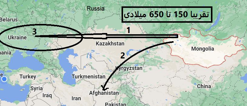 و اما در سمت خاور زمین، قبایلی که به ماوراءالنهر و افغانستان رفتند، با ایرانی زبانانی که پیش از آنها به این مناطق مهاجرت کرده بودند، استحاله یافتند.
