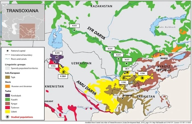 مثلا به تازگی (2022) پنج پژوهشگر از دانشگاه های فرانسه و سوئیس نتیجه تحلیل های خود را در میان گروه بزرگی عبارت از 16 جمعیت ساکن در منطقه شامل 1501 ژنوم کنونی از اوراسیا و آفریقا (تاجیک ها، یغنابی های تاجیکستان، ترکمن ها، ازبک ها، قرقیزها، قزاق ها، مغول ها و دیگر مردمان آلتائی زبان) منتشر نمودند. در این مقایسه ساخت ژنتیک نمونه های مزبورو همچنین 3109 ژنوم مردم عصر آهن آسیای مرکزی (هزار تا هفتصد سال پیش از میلاد) بررسی شده است.[4]
